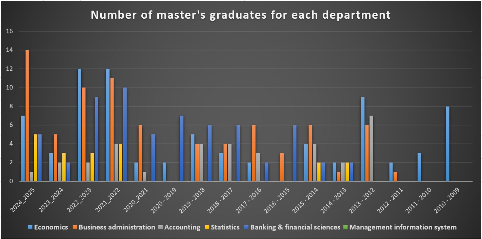 Number of master's graduates for each department |