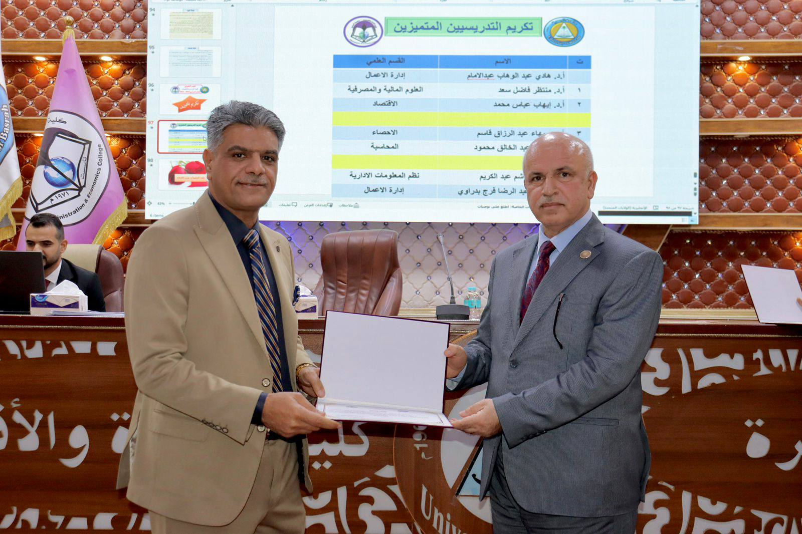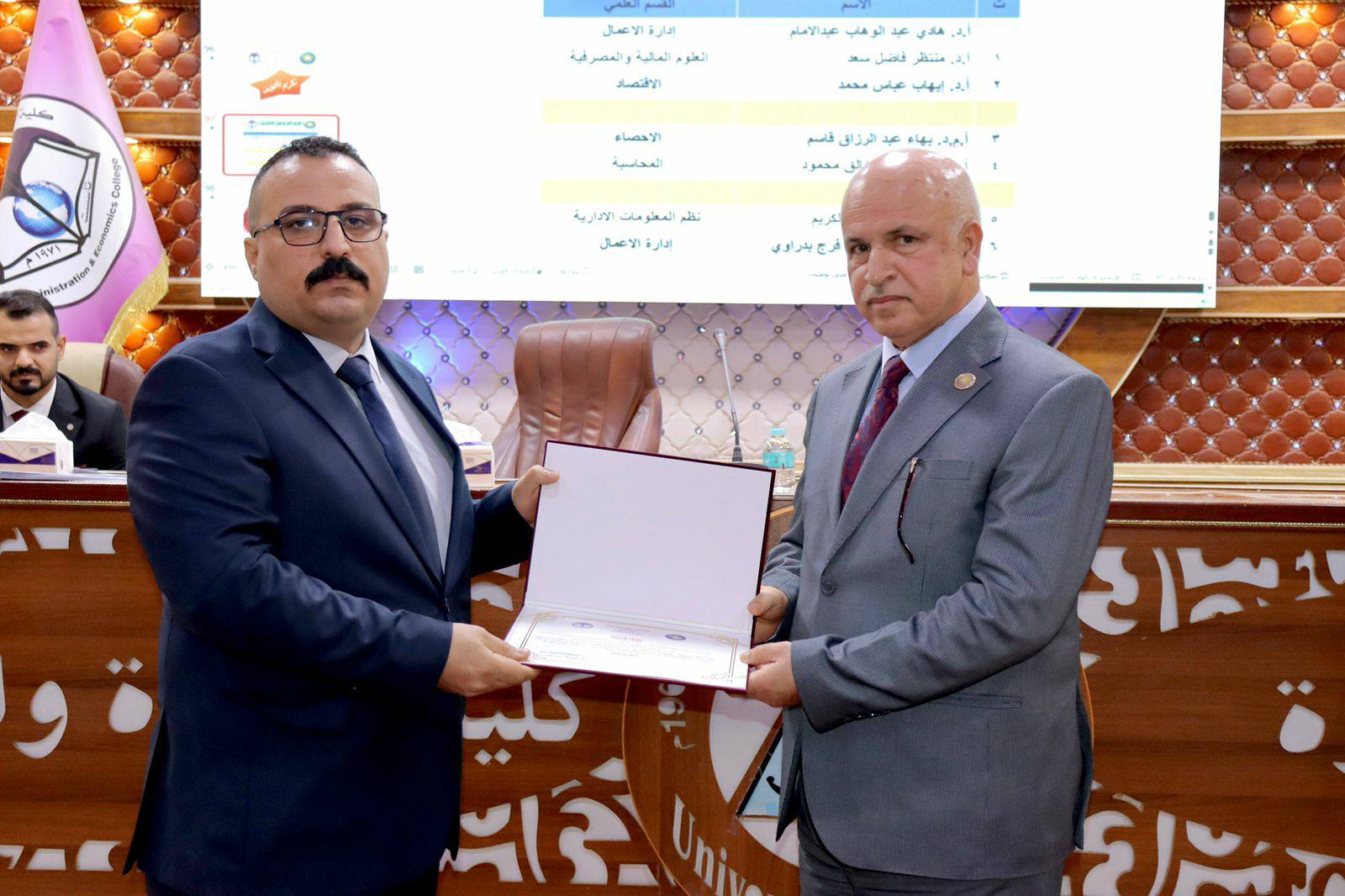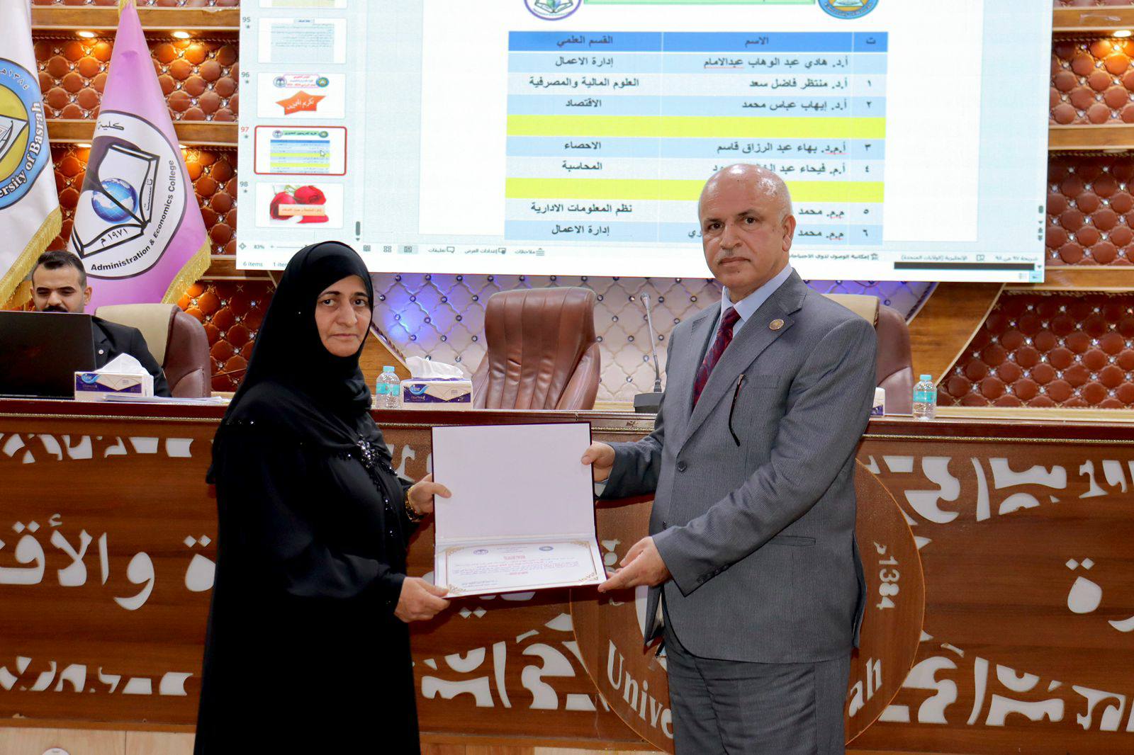 The financial and administrative topic was presented by the Assistant Dean for Administrative Affairs, Dr. Uday Safaa Al-Din, while the student affairs topic was presented by the Assistant Dean for Student Affairs, Dr. Ali Abdul Zahra. The most prominent challenges facing the educational and administrative processes were discussed, and recommendations were made to improve scientific research and community service.