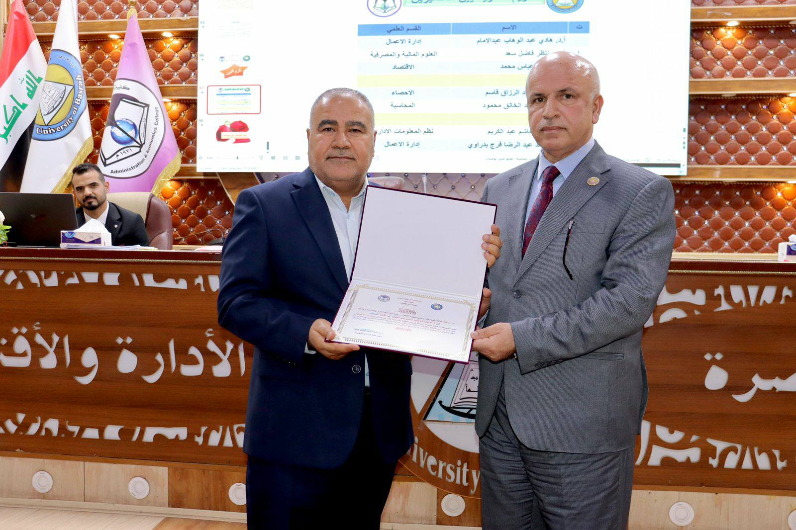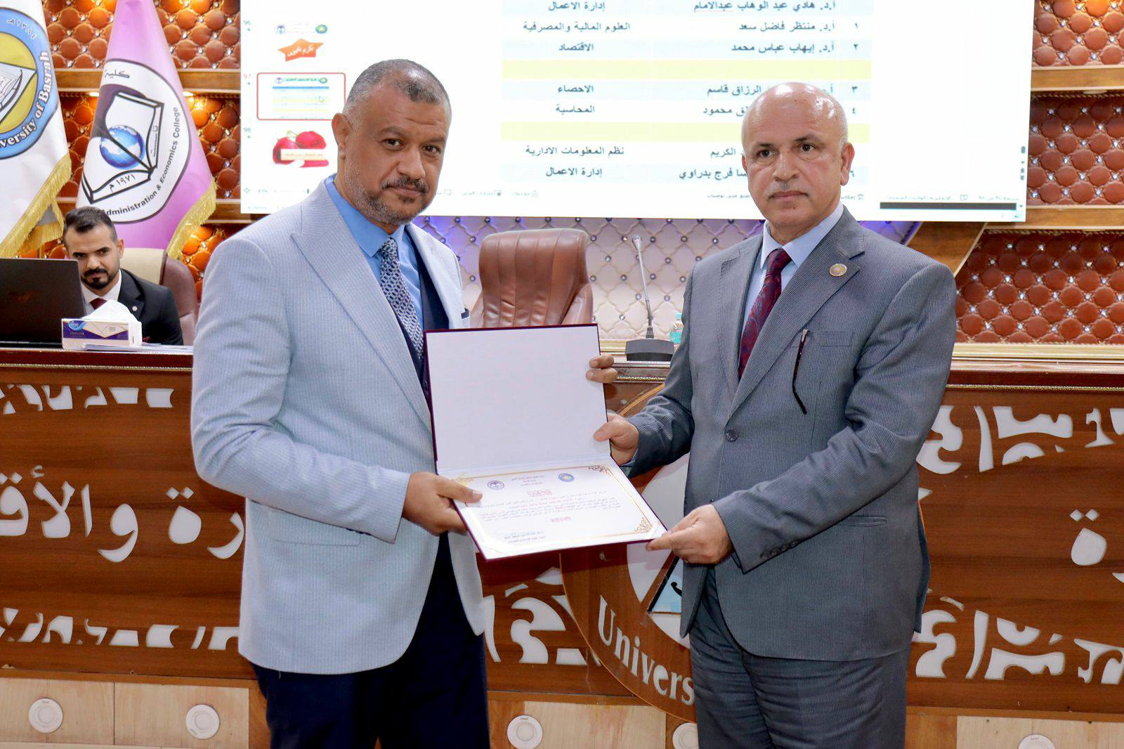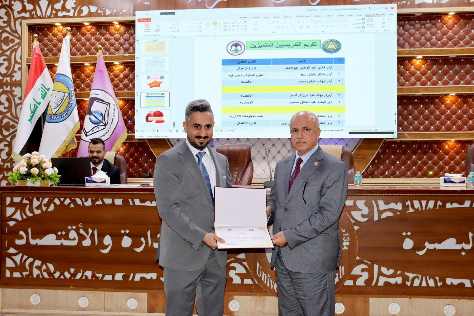 Under the patronage of the President of the University of Basra, Professor Dr. Muhannad Jawad Kadhim, and under the supervision of Professor Dr. Abdul Hussein Tawfiq Shibli, the College of Administration and Economics held its 17th Annual Evaluation Conference for the academic year 2024-2025, under the theme: "Quality Assurance: A Sign of Loyalty to the University."
