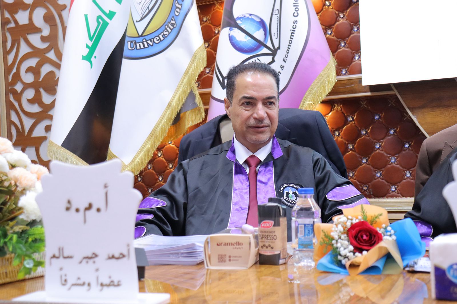 The dissertation, submitted by student Ahmed Da'ir Abdul Rahman, included a comprehensive study of three countries (the United States, the United Kingdom, and Sweden) compared to Iraq, demonstrating the theoretical framework of green banking and its statistical analysis (2013–2035).