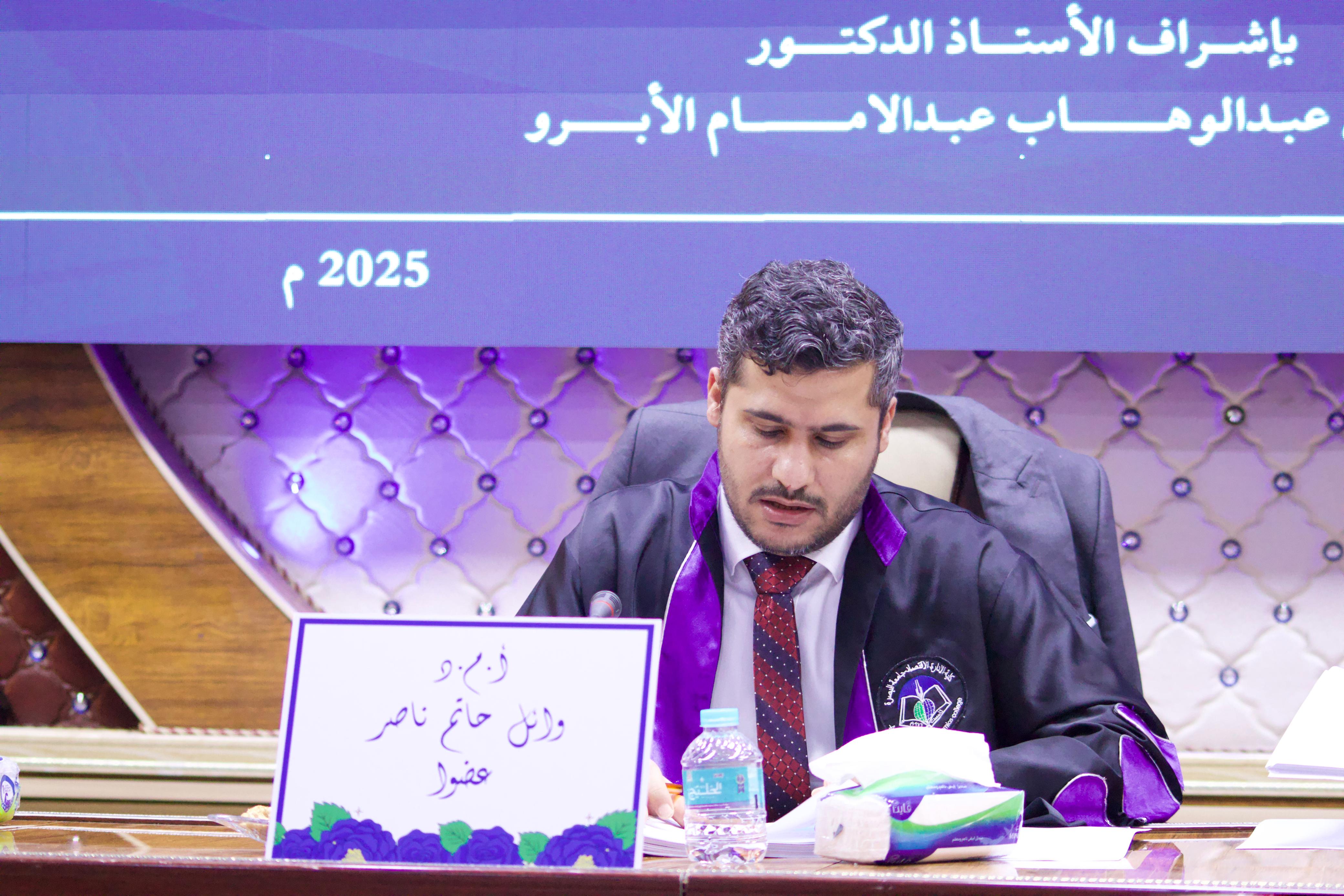 The thesis, submitted by student Zahraa Fadhil Abdulabbas, aimed to test the direct and indirect impact of entrepreneurial characteristics through entrepreneurial inspiration, while analyzing the interactive role of the entrepreneurial ecosystem and psychological capital.